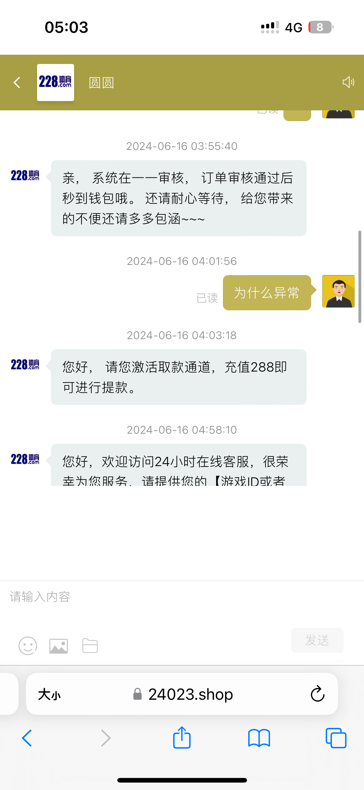 被黑1888 事情是这样的 从白嫖开始玩 500本金打到10w 充充提提 总体来说还是赚了 一万多 守不住两个小时送回去8个多 前前后后充值有50万左右 提现也差不多 明摆着黑优惠 奉劝大家不要赌了 真的看不到未来