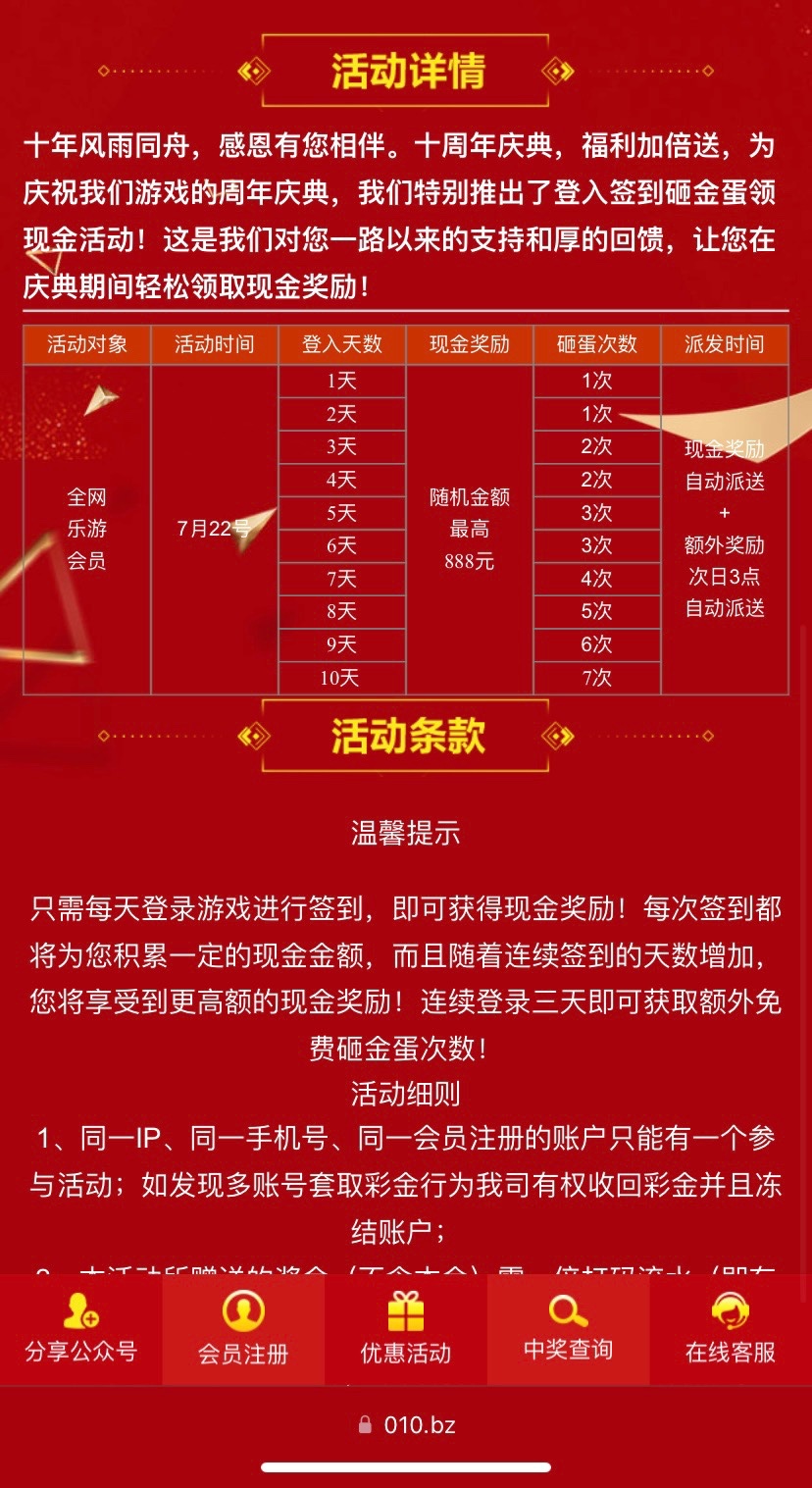 乐游01 十周年免费砸金蛋