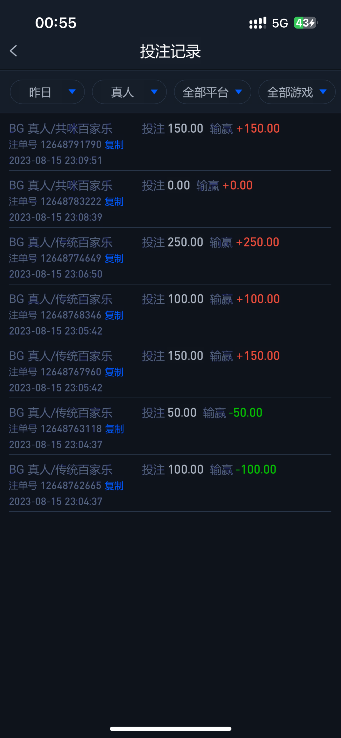 短信说送注册送166,结果注册上去一分钱没有,我也不知道是脑子糊涂了还是干嘛,充值了600块钱进去,我先充值了100打电子输完了,然后我充值了500进去玩bg百家乐,赢了400,我先提现了600,还剩下400我去打了电子,没啥水我就又提了400,结果提现的600到账,400说我套取红利,400直接收回,兄弟们真的注意一点,这平台别碰,从没见过这样恶心的平台