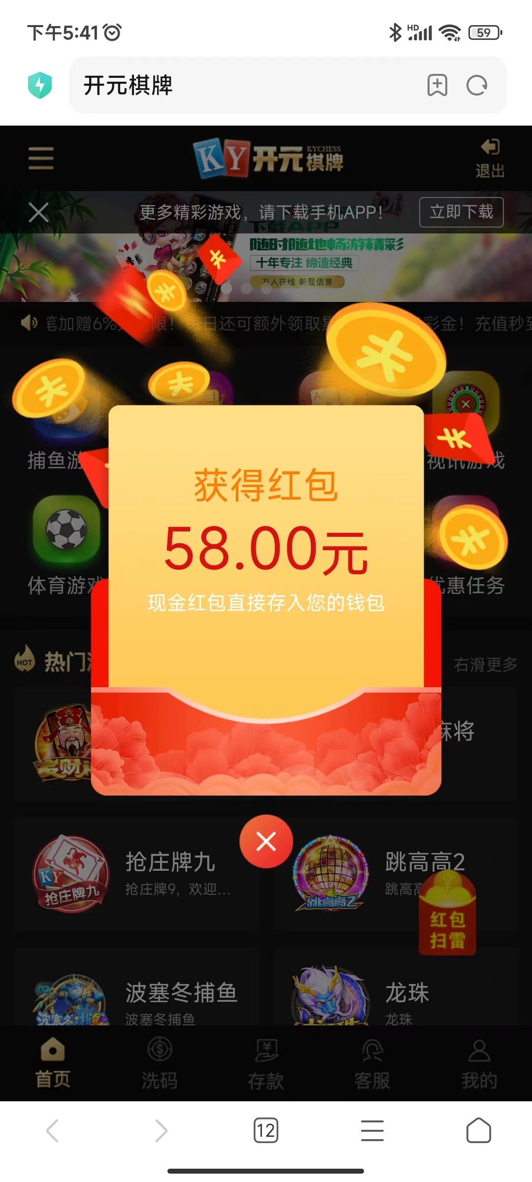 老用户登入自动弹出红包回馈58-1888,不是老用户无视即可