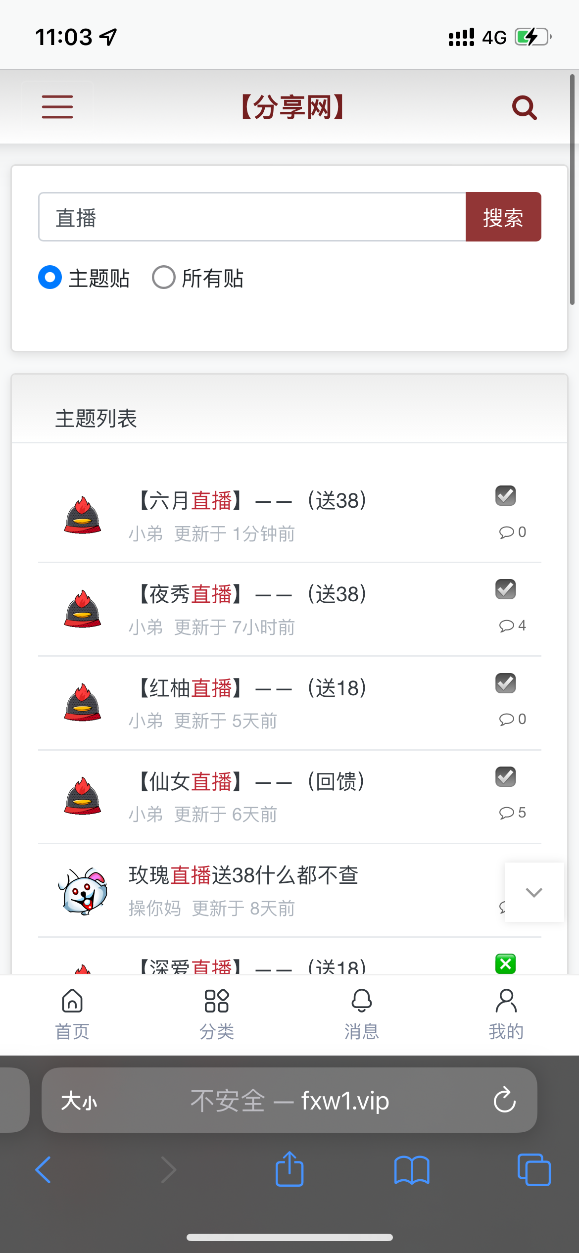 分享网内搜索直播,就可以看到发过的直播