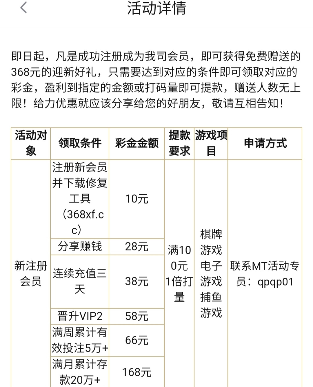 限制棋牌/电子/捕鱼,最低100提现。