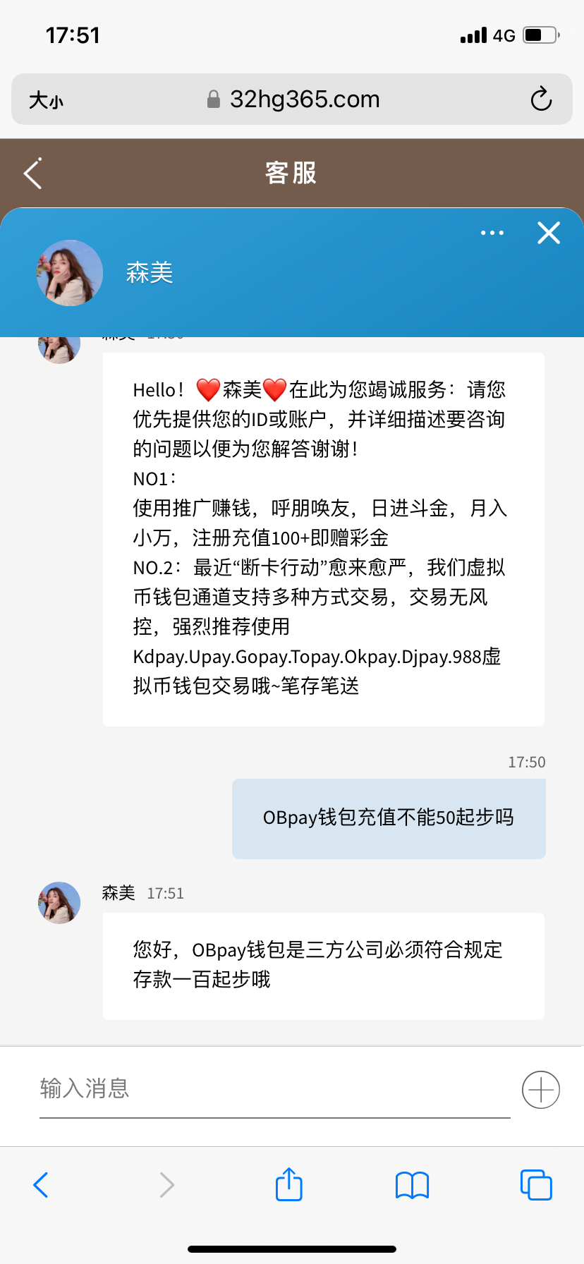 jduxnr 没有50的,提50到ob被驳回,ob充提最低100