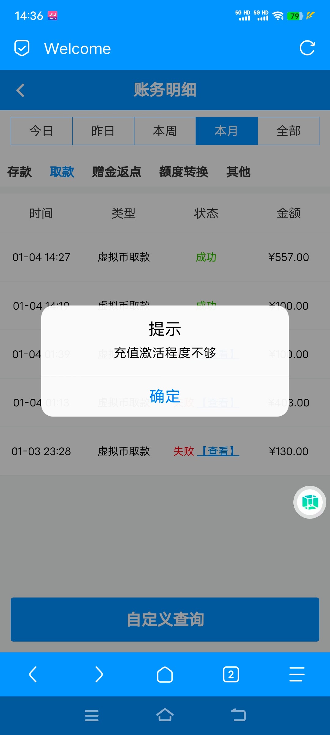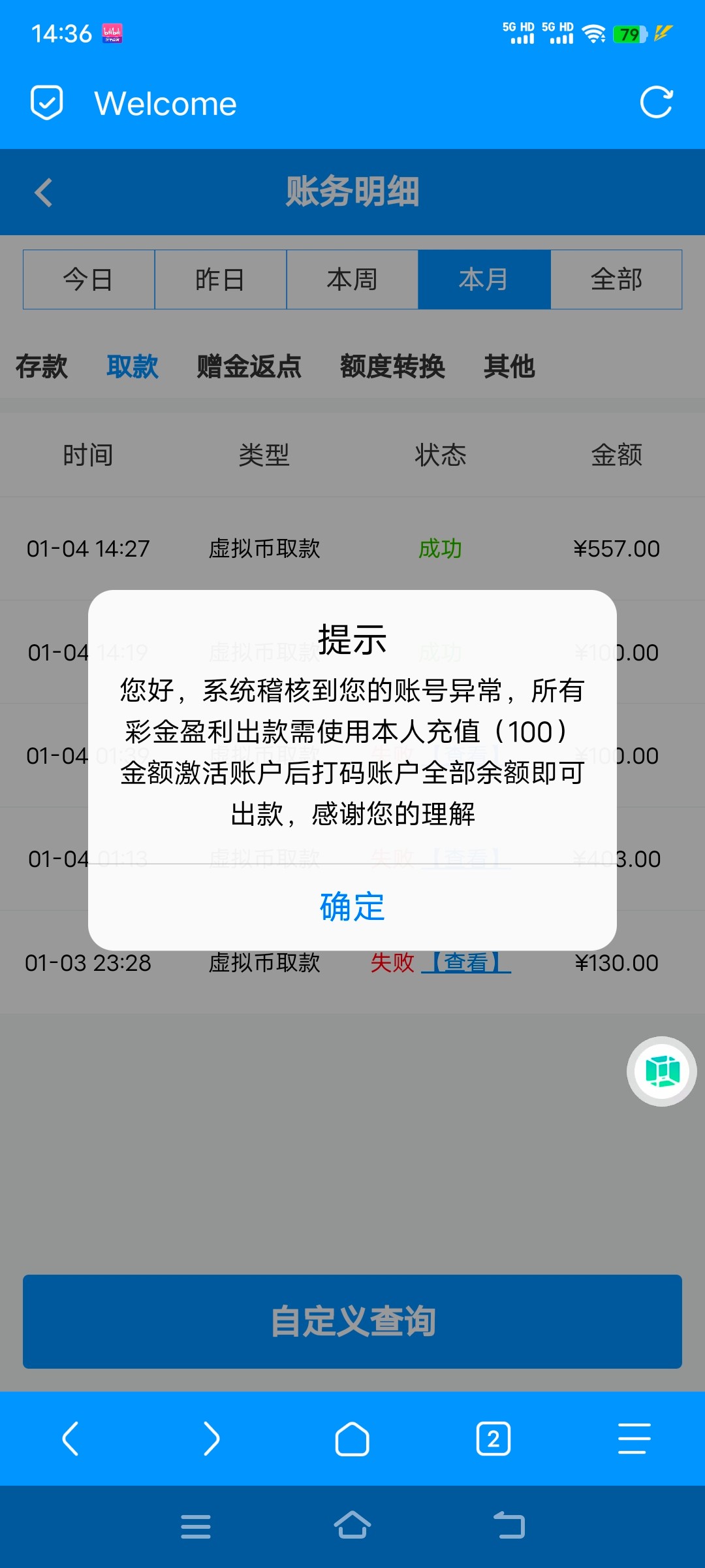 提现说要充值100激活账号,充值了打完流水提现又几把说充值活跃度不够。