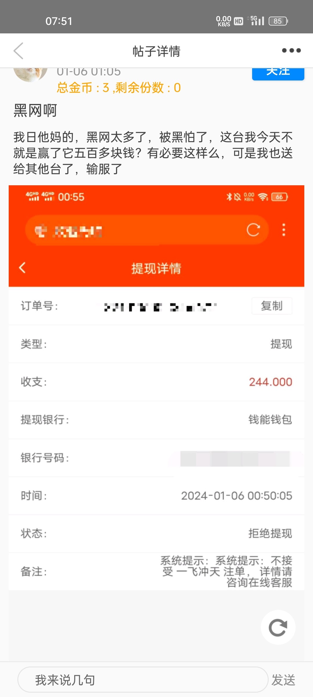 兄弟,你这个是拒绝提现,我是提现抹入分钱不给啊,这个280tmd新葡京