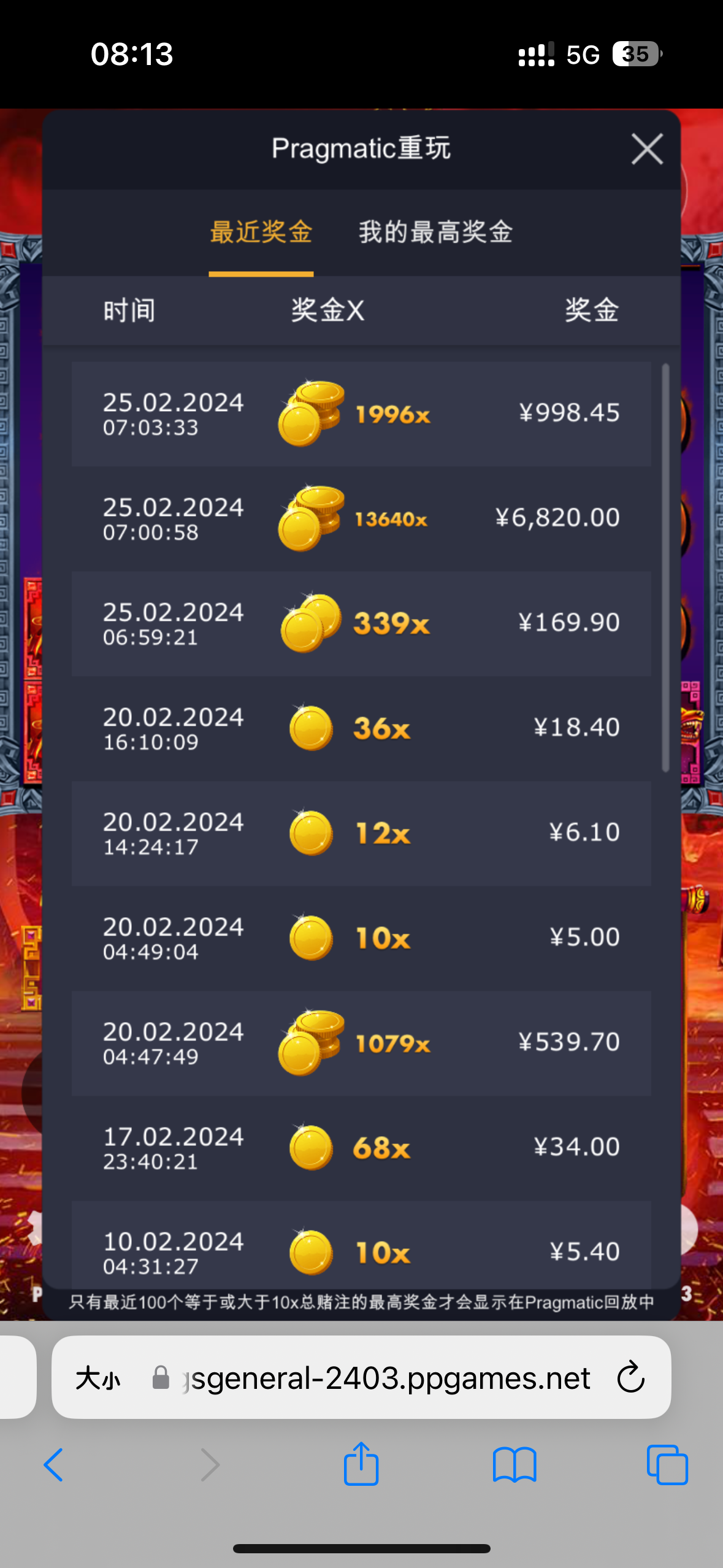 前几天200上3000没几天又送2000多回去,这次上100玩了一个晚上终于给了13000多倍2000倍连着来,平台就不说了挂个是频接,大家一起看看https://replay.pragmaticplay.net/EpkXcHNOPt