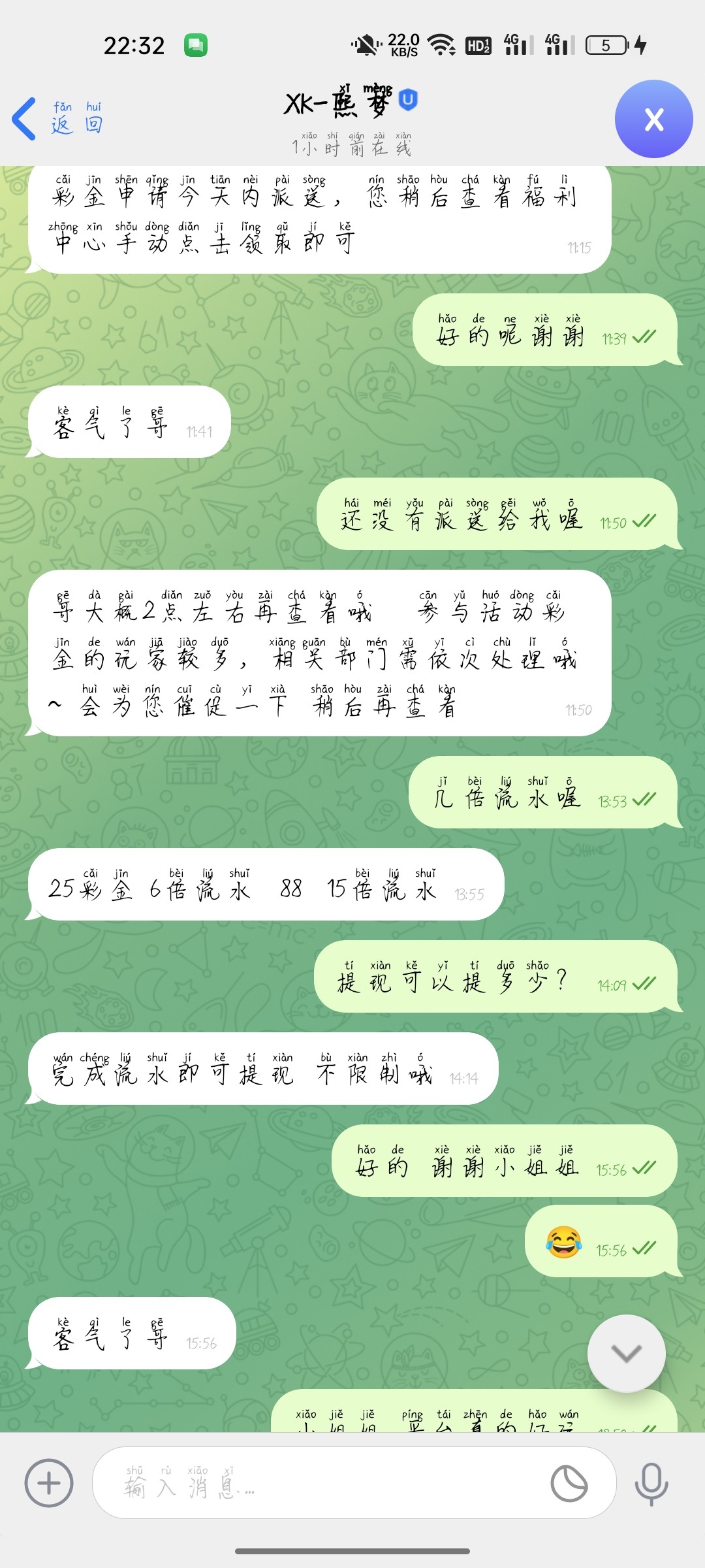 今天送我58打到200提100留100一直不给我出,然后就6块打到了1300。藏了1200的pg刚刚提了100给出了。不要留余额