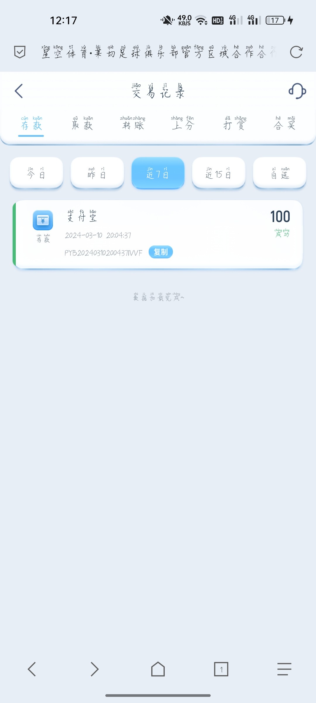 充值100  没提出来