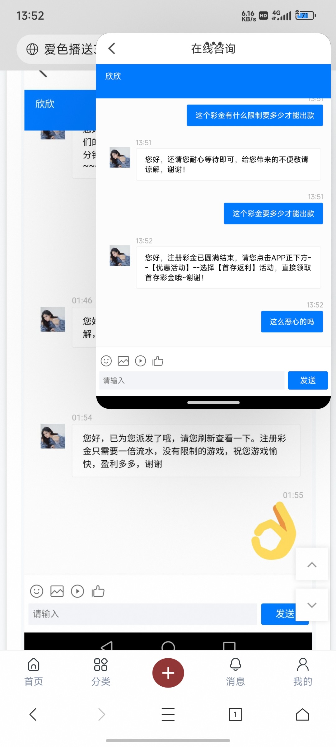 这傻逼台子,一个人一种回复,我一去就是活动结束