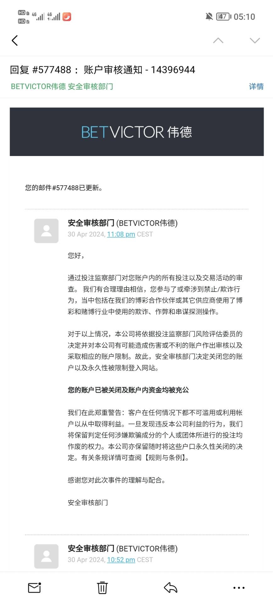 我的来邮件说审核通过,可以提款,大晚上的没敢提,又去干了几个小时,起起伏伏,40个最低输的还有2万,最后赶到70个,流水1000万,白天提款通道最高1万,提了已经过去了3个小时了,没到,咨询客服说2-8小时处理完毕,让等待