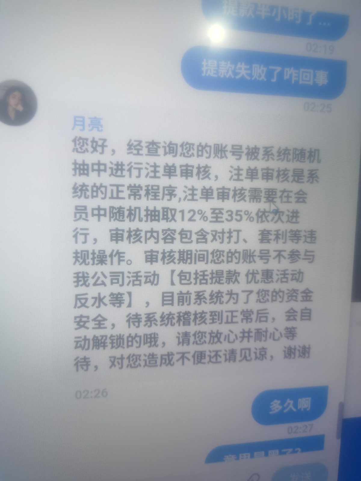 没戏,审核结束不了,你登录看看,如果已经冻结了,那就黑了