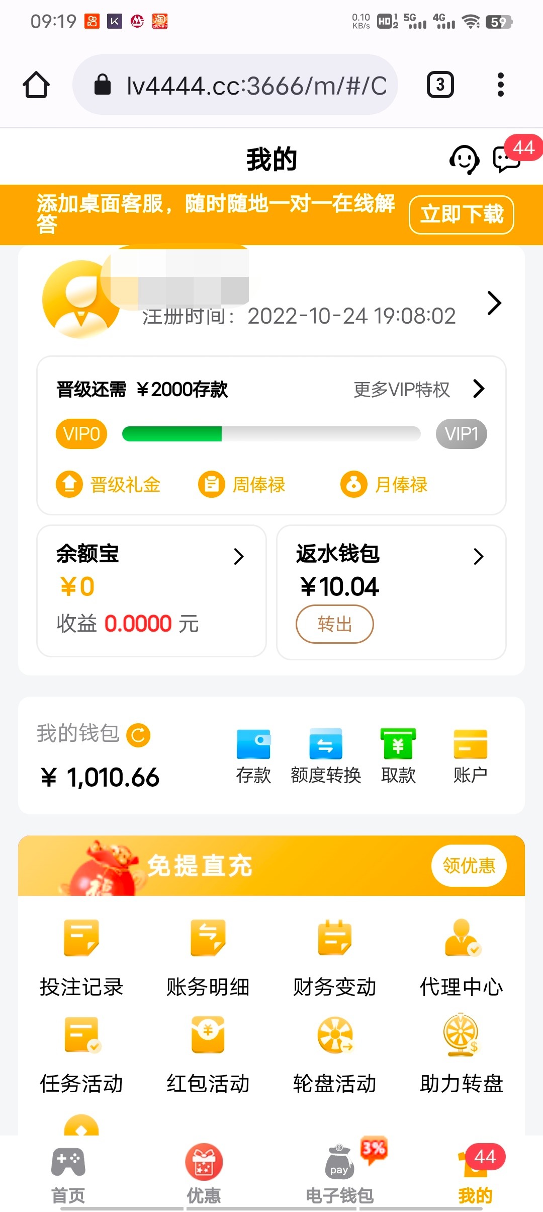 今天10块彩金打到1000,之前充过1000现在任意充值一笔就可以提现,你们最近试过没,现在黑不黑?以前反正还行,充了就给到