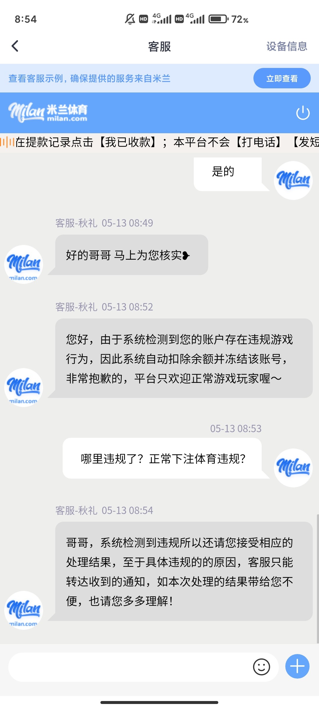 送的10加上免费竞猜领的11,一直玩的体育打到600多提100封号了,第一次提的卡给我退回了,余额还在,第二次提EB直接封号了