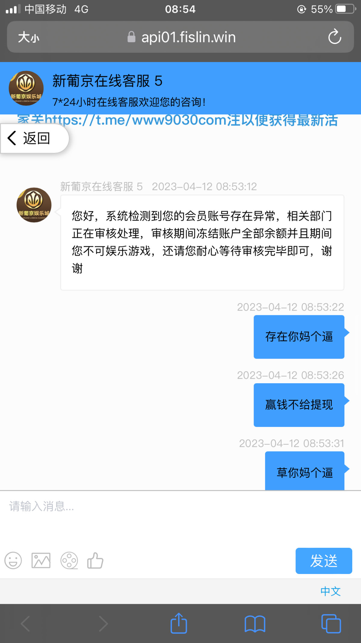 下次再发这种台子 劳资永大棒塞你妈的面包里面 给你扣出来生你妈个逼的路人 狗杂 司马台提现到账空汇 完你妈个逼 还说我啥子账号异常 你妈个逼