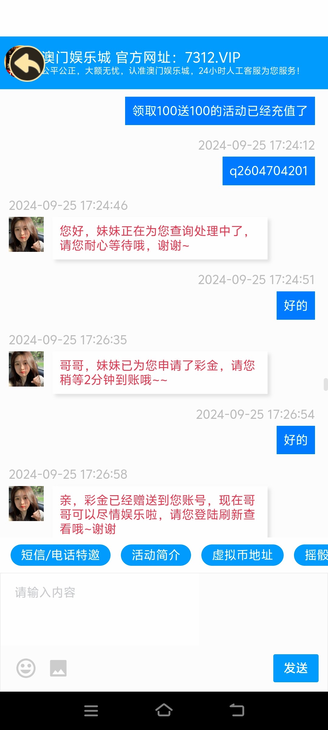 7312.vip这傻逼台老哥们注意了一百块钱都骗