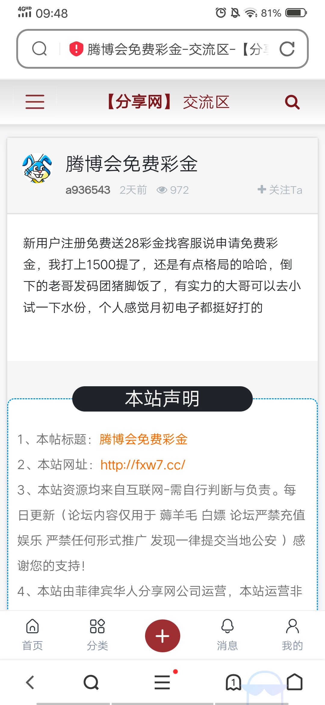 3、本站资源均来自互联网-需自行判断与负责。每日更新(论坛内容仅用于 薅羊毛 白嫖 论坛严禁充值娱乐 严禁任何形式推广 发现一律提交当地公安 )感谢您的支持!