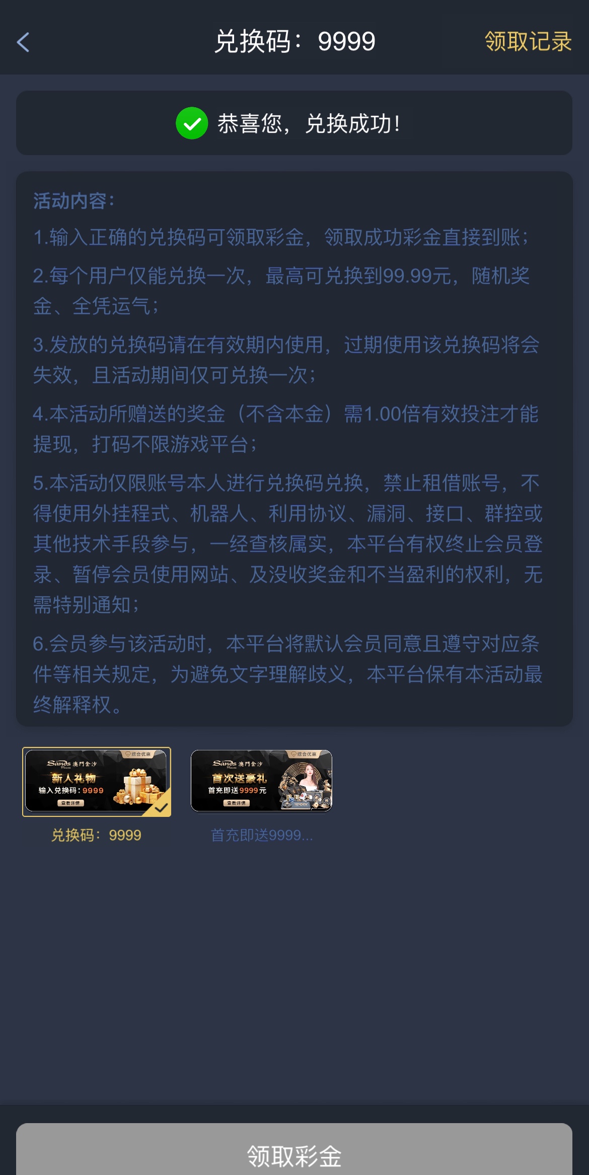 澳门金沙下载app做任务领取彩金还有新人兑换码新人兑换码是9999活动里面有速撸易黄