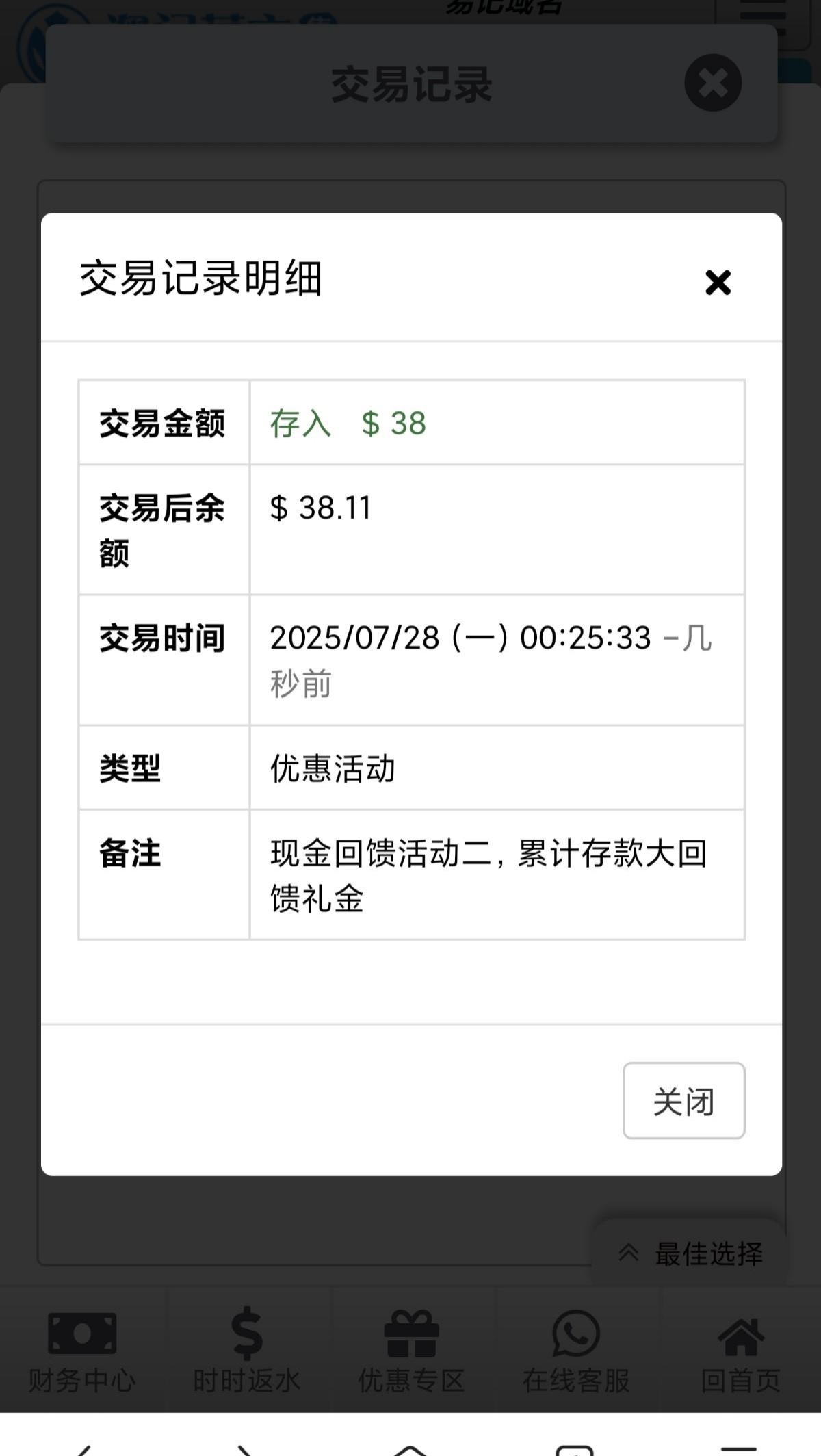 存款回馈38彩金