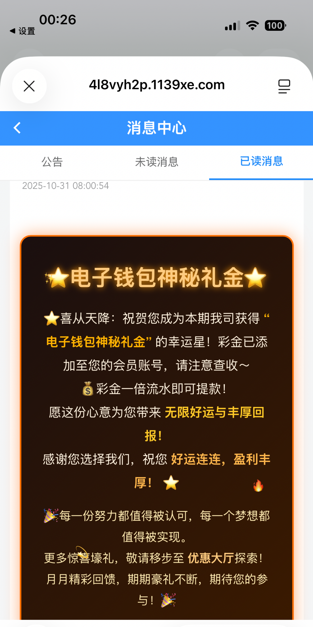有号的,上个月有钱包充值的去看一下有神秘彩金,给了我13梭哈到账了 地址 1139.com