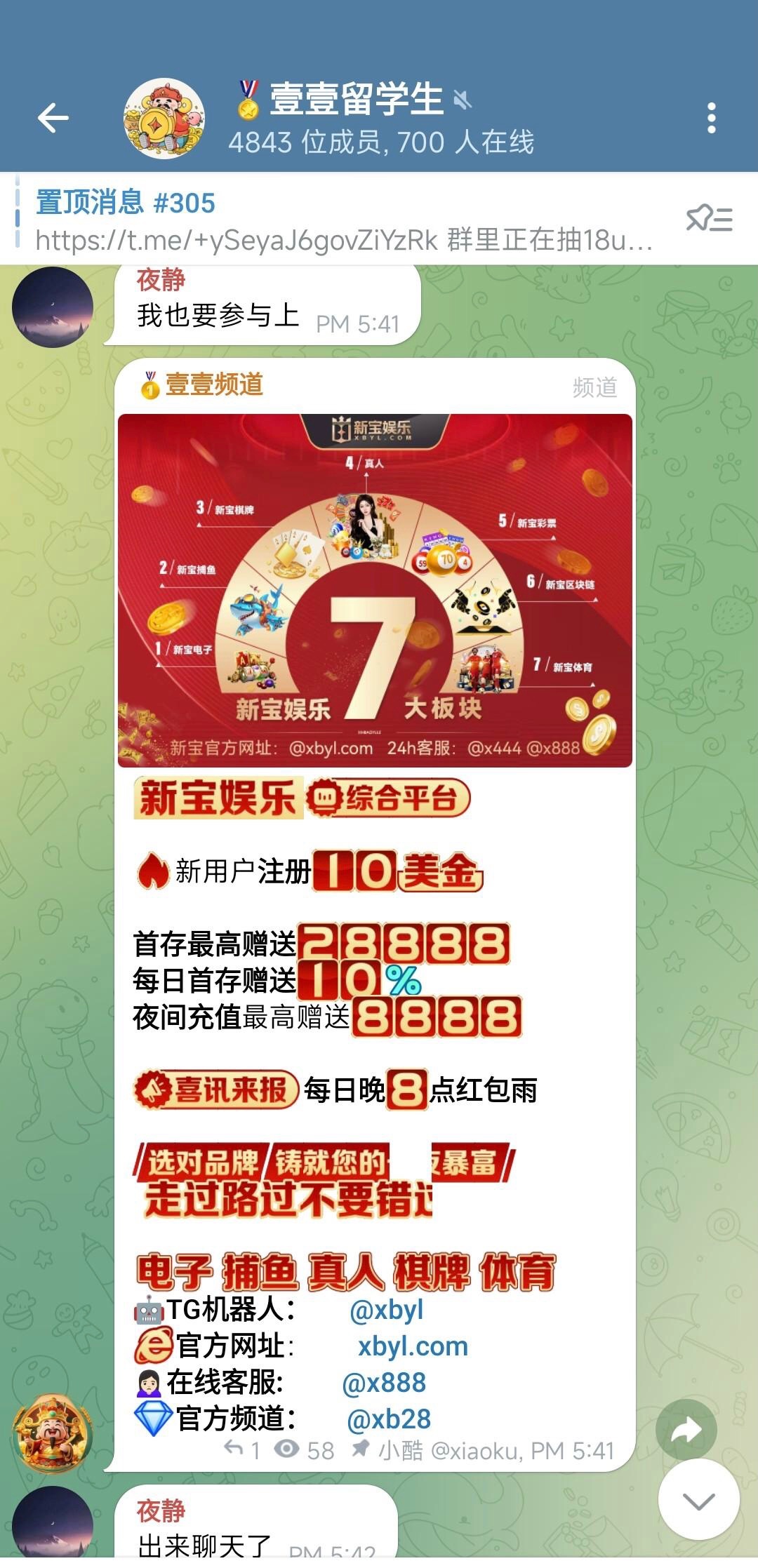 联系飞机客服@x888领取10u,注册u版本,只能电子捕鱼五倍水,50u起提,提供其他平台近30天内单笔100u以上充值记录,我给的rmb台的录屏也给了,我没打出来,自己去试吧