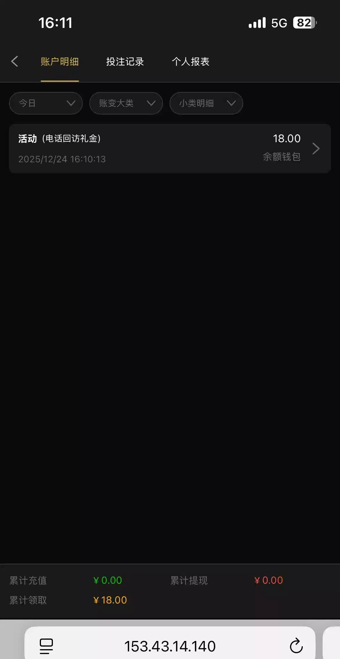 领了一个回访彩金18