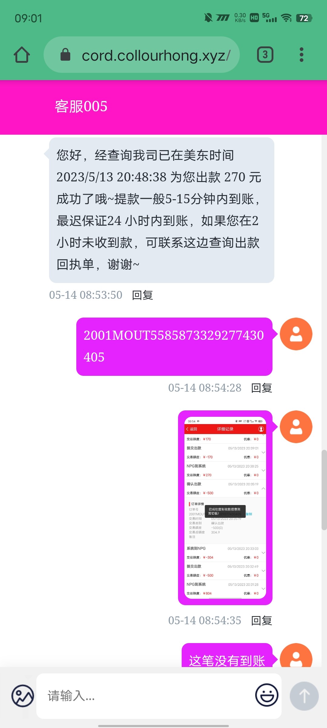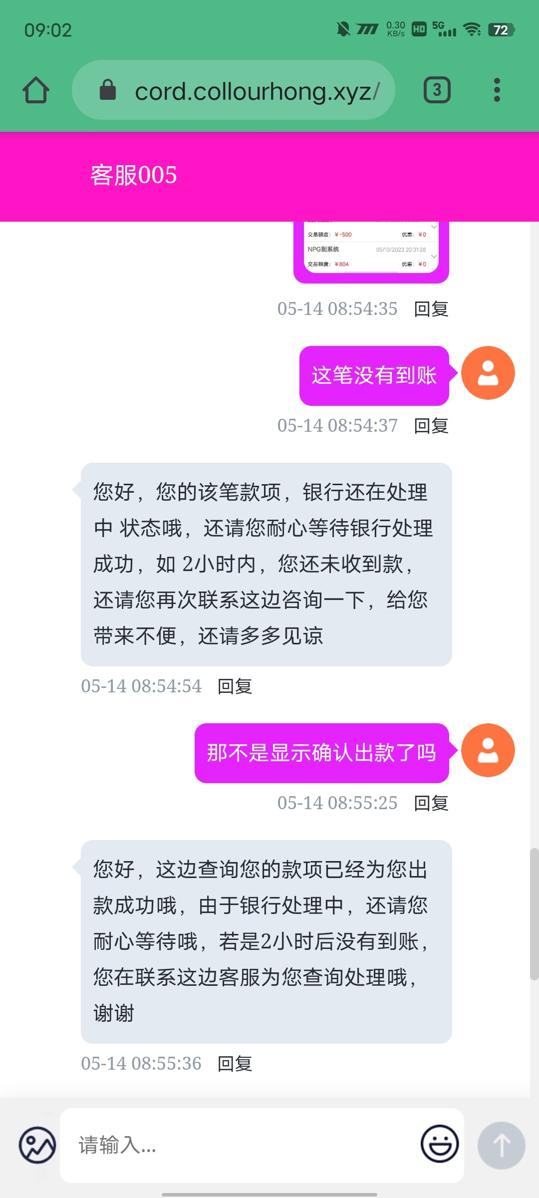 你不和客服对峙也能到账,有时候是晚两个小时