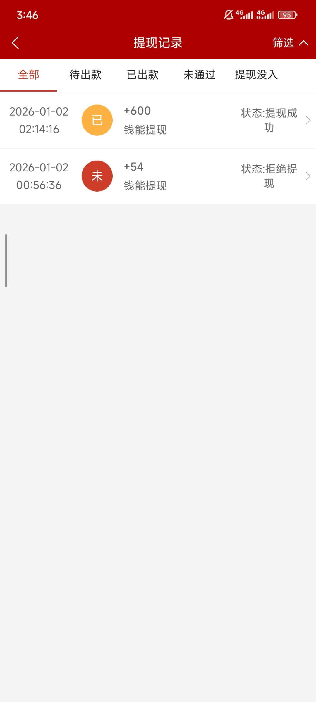 大半年没玩了 想着最近元旦弄点回馈彩金 773抢了2块钱红包打到54想提现 结果给拒绝了 本以为会直接挂 后面没想到pp电子挺来水的 提现600 还给我到账了 感谢一下 又能吃点好东西了 也祝各位老哥马年快乐 各个发财