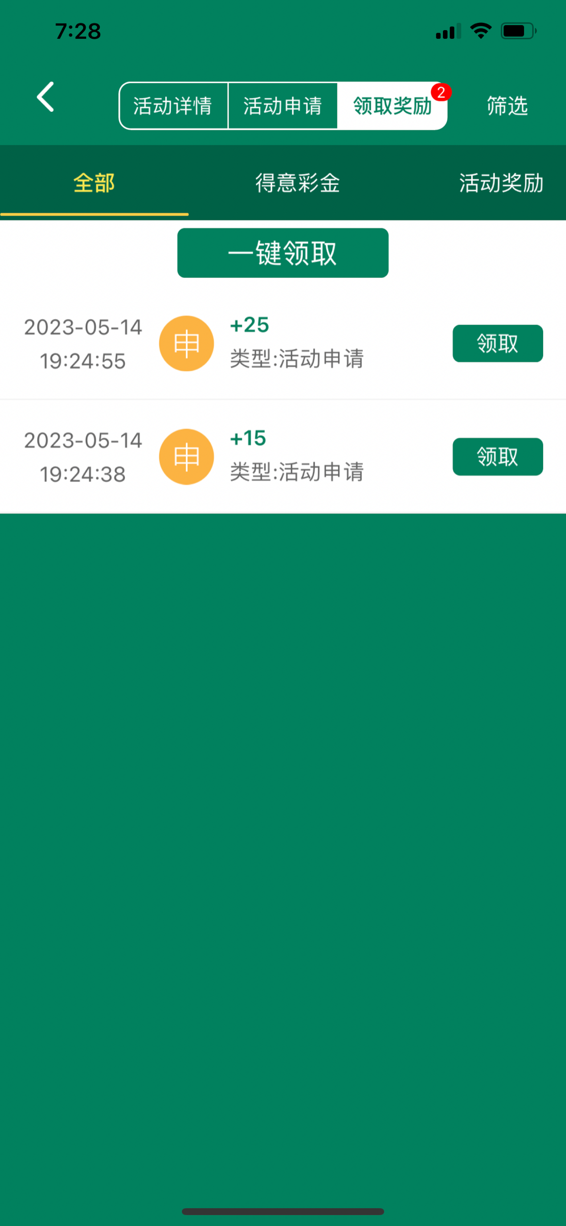 你是领到了,看你能不能打到150或375了。捕鱼会机会大点。