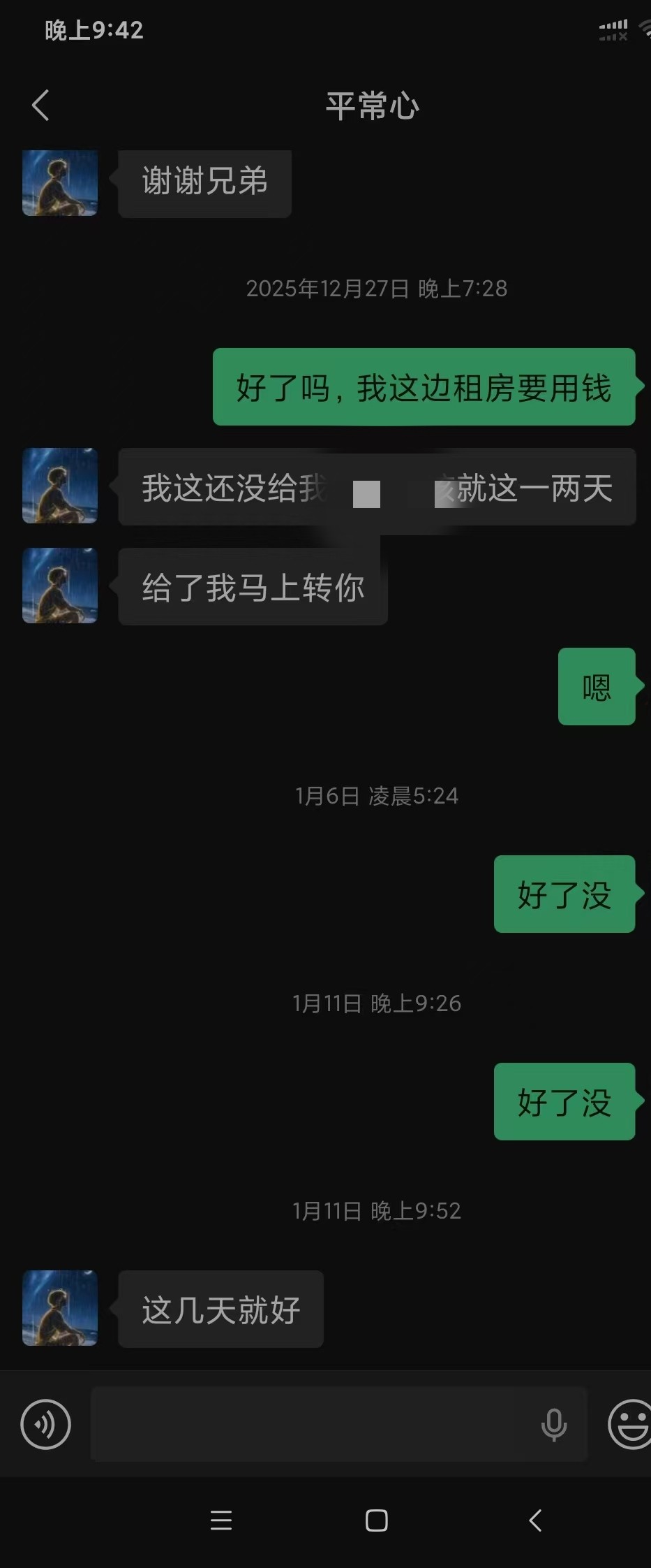 消息也不回了,回消息就是过几天这几天,然后就是给不出来,兄弟们这种是不是打定主意不还了