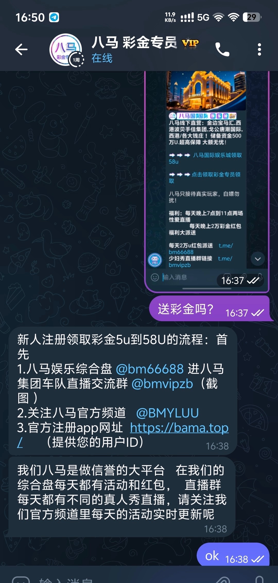 注册送5u联系@bmvip666 有一个提供流水跟US TD活跃这个需要这些我不够你们谁行谁上吧我没打出来