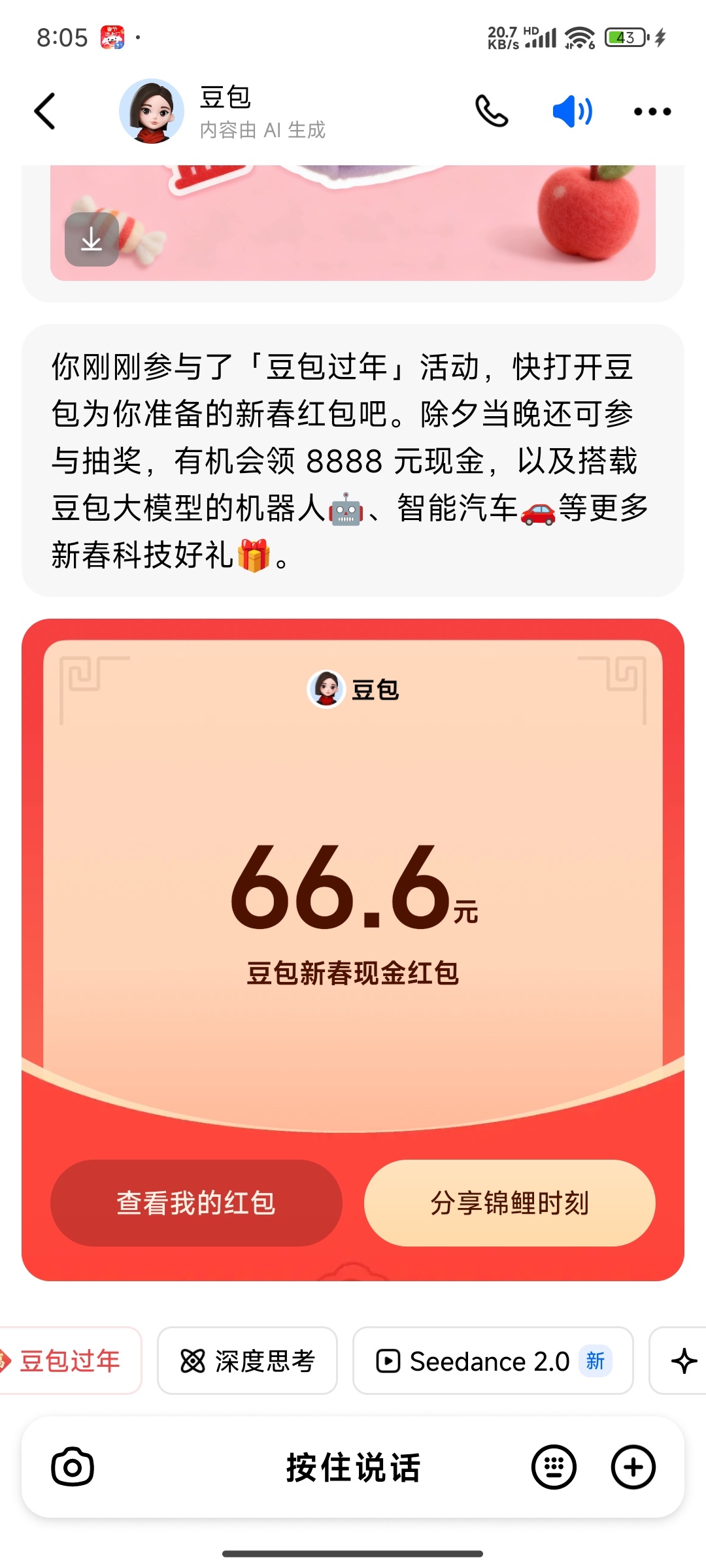 豆包app 左下角 “豆包过年”,有几率大包,没入口去更新下载最新版本app