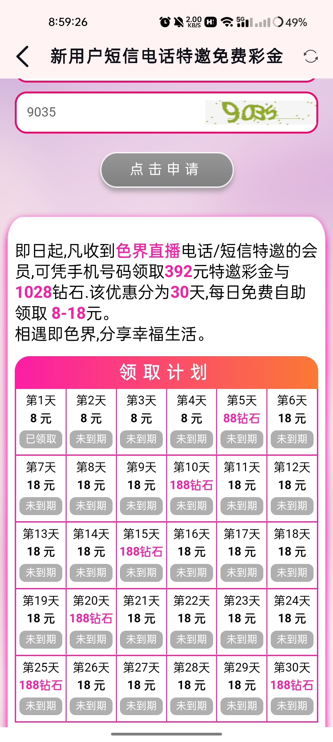 色界黄播特邀彩金,有短信的可以去试试