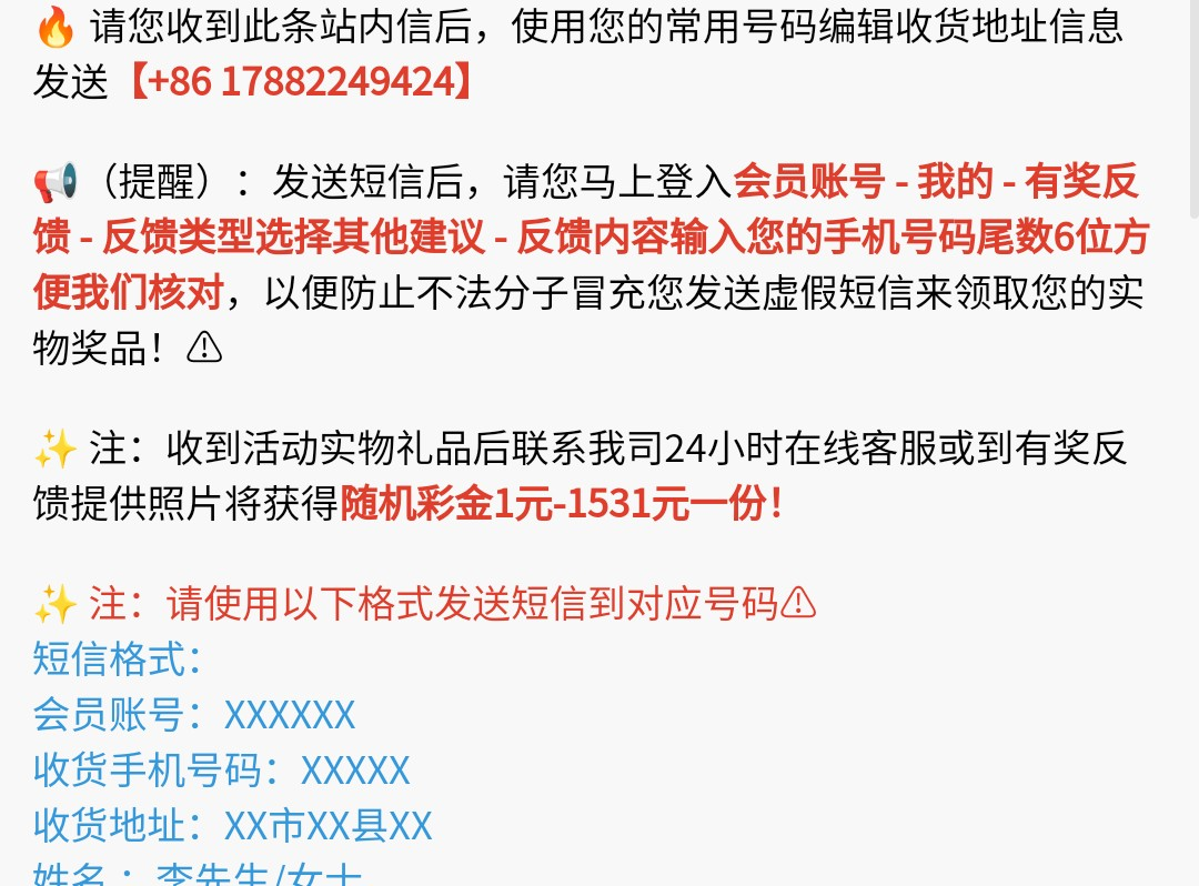 以前注册过账号的,今天登录,有弹窗或者站内信通知里面有彩金或者实物奖励,实物拿到了还能再领一笔彩金,怕发短信可以联系在线客服核实,我就是
