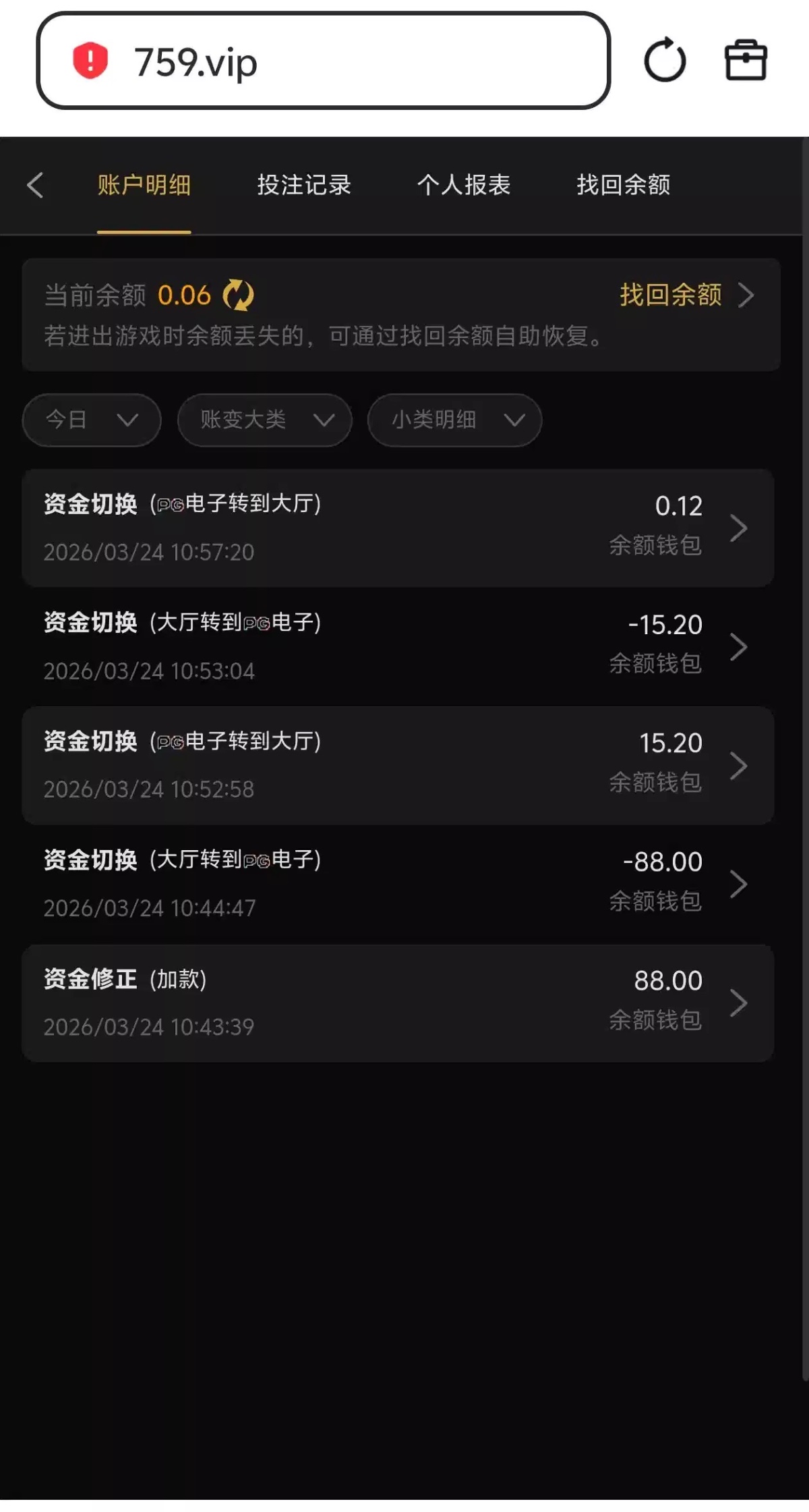 出款情况:自测(