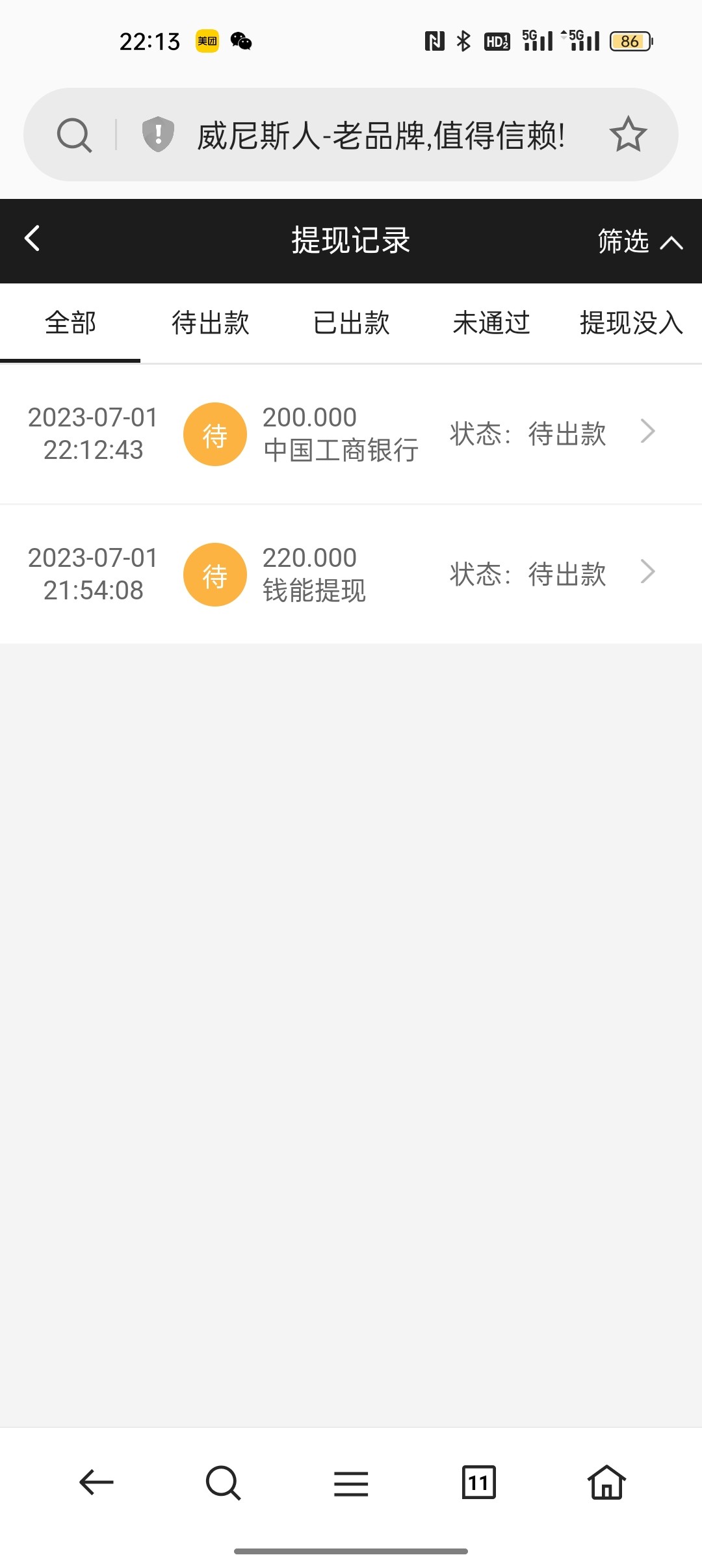 德风花雨 空汇,提现成功。一个小时才到。app客服空白,网页客服骗我说合并去总台注册激活,叫我给账号密码,妈的黑台。还有最后到账了