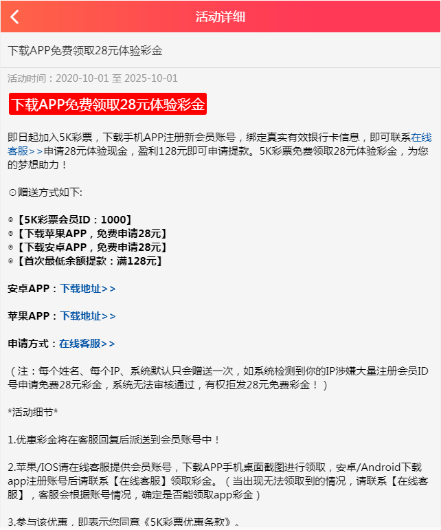 新用户注册下载APP送28元彩金最低满128元提款,彩票容易IP多建议全程用流量卡开户写现在的地址